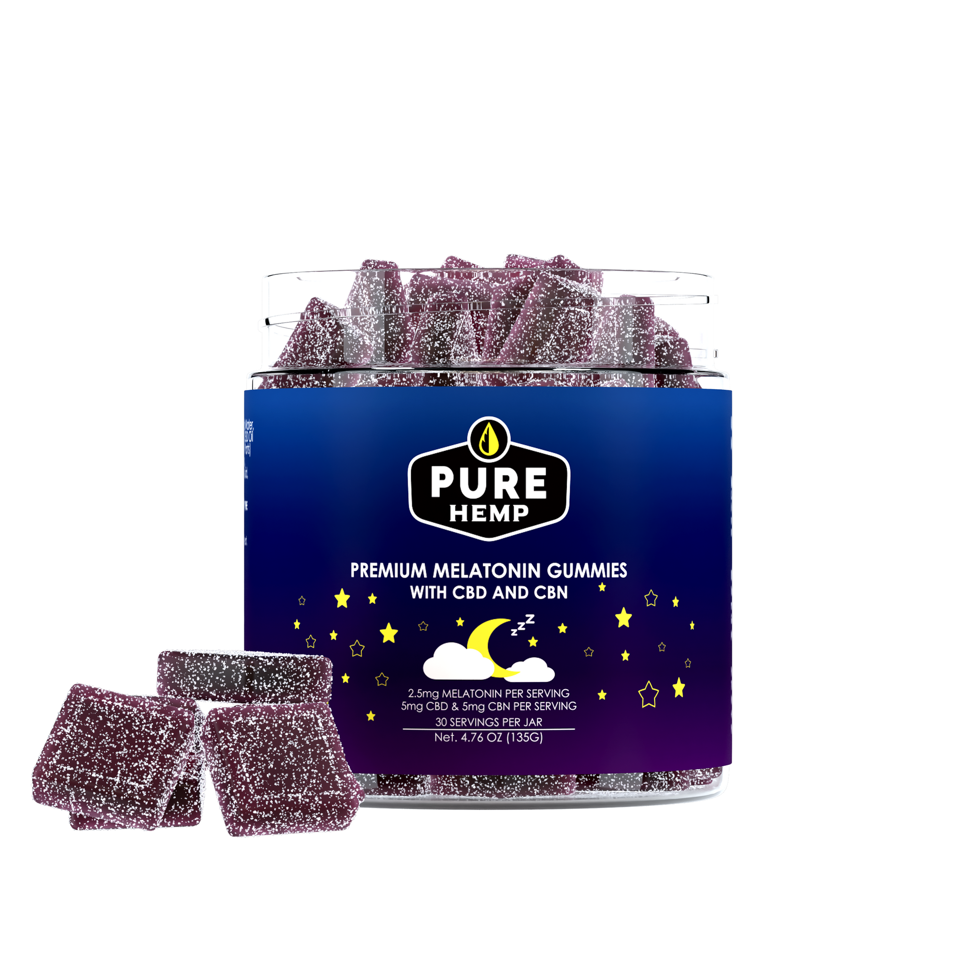 Pure Hemp CBD Gummies for better nights’ rest, CBD+Melatonin encourages a more consistent circadian rhythm and quality sleep. Safe, gentle, and effective, this formulation helps aid in optimal rest and endocannabinoid support...